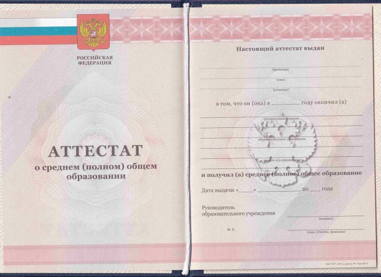 Аттестат школы за 11 классов, доступные с годами выдачи с 2010 по 2013. Используем оригинальные бланки ГОЗНАК с подписями и печатями, полная комплектация включает корочку, бланк аттестата и приложение.