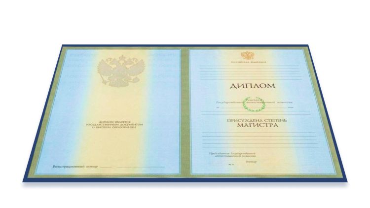 Диплом квалификацией магистр, доступные с годами выдачи с 2014 по 2025. Используем оригинальные бланки ГОЗНАК с подписями и печатями, полная комплектация включает корочку, бланк диплома и приложение.